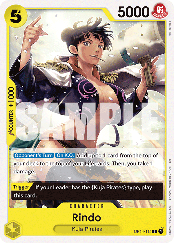 Rindo is card #115 from THE AZURE SEA’S SEVEN (op14eb04). This page helps collectors and sellers understand where the card sits inside its set, what type of rarity it has, and how current market listings are behaving over time.